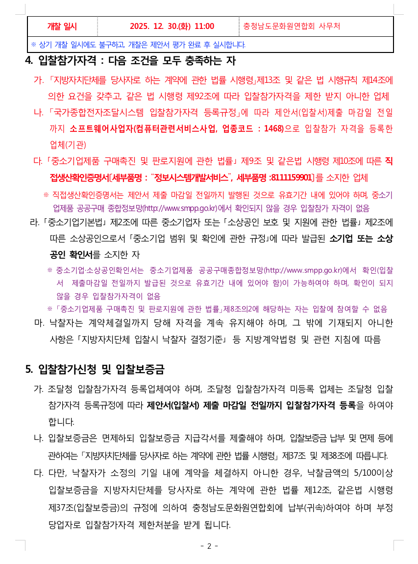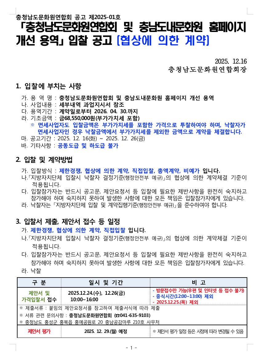 「충청남도문화원연합회 및 충남도내문화원 홈페이지 개선 용역」입찰 공고
