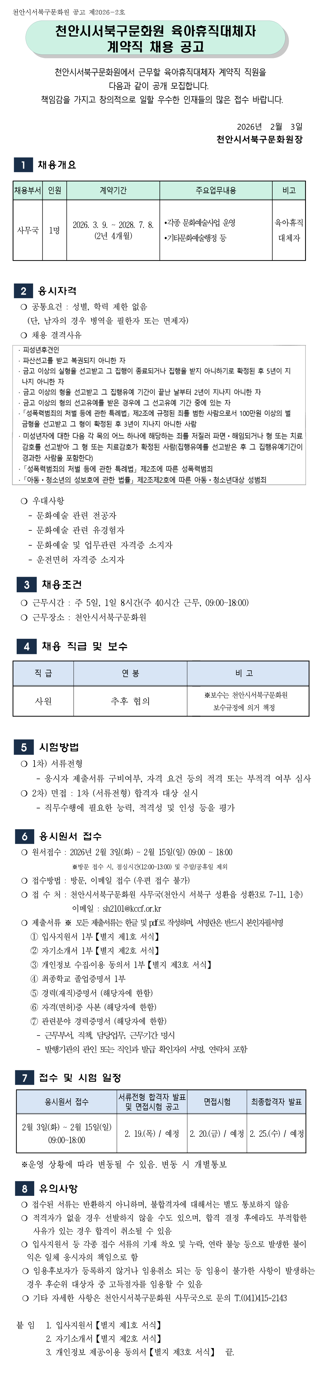 2026년 천안시서북구문화원 육아휴직대체자 계약직 채용 공고.pdf